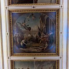 圣帕特里克大厅是爱尔兰历任总统就职仪式的举办地点,曾用于接待前美国总统肯尼迪、摩纳哥格蕾丝王妃、英国女王伊丽莎白二世等。天花板上装饰着意大利艺术家 Vincenzo Waldré 绘制的3幅巨型画作,是爱尔兰最重要的彩绘天花板之一。