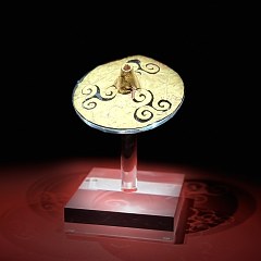 位于一层西厅,陈列了以「太阳神鸟」金饰为主的30余件金沙遗址出土精华文物。馆中的「金面具」是目前国内年代最早、保存最完整、体量最大的黄金面具。